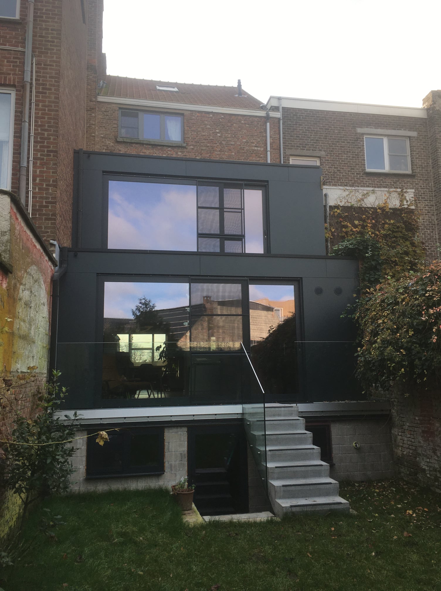 Achterbouw rijwoning te Gent - 110 m2 - afgewerkt met volkernplaten