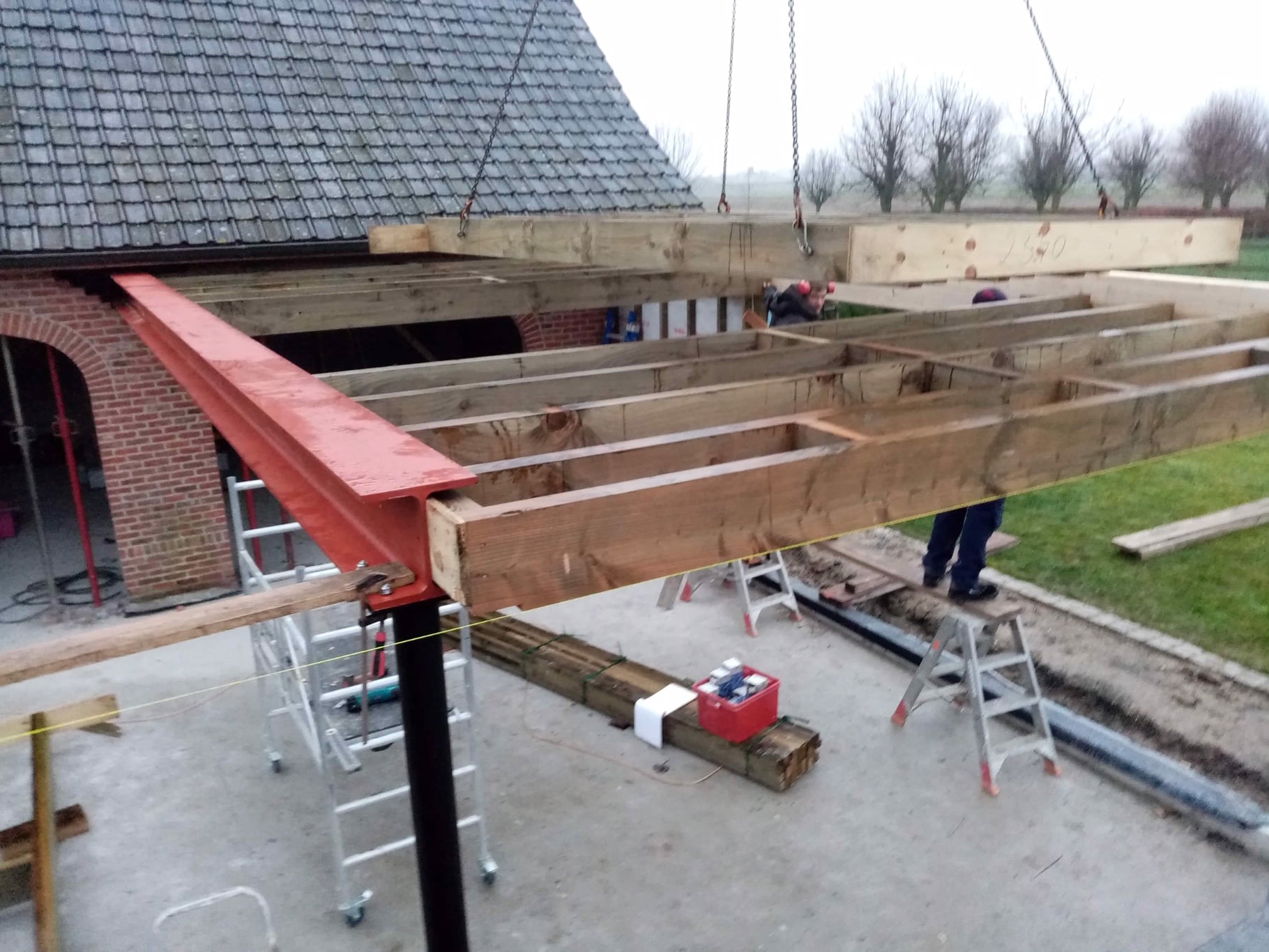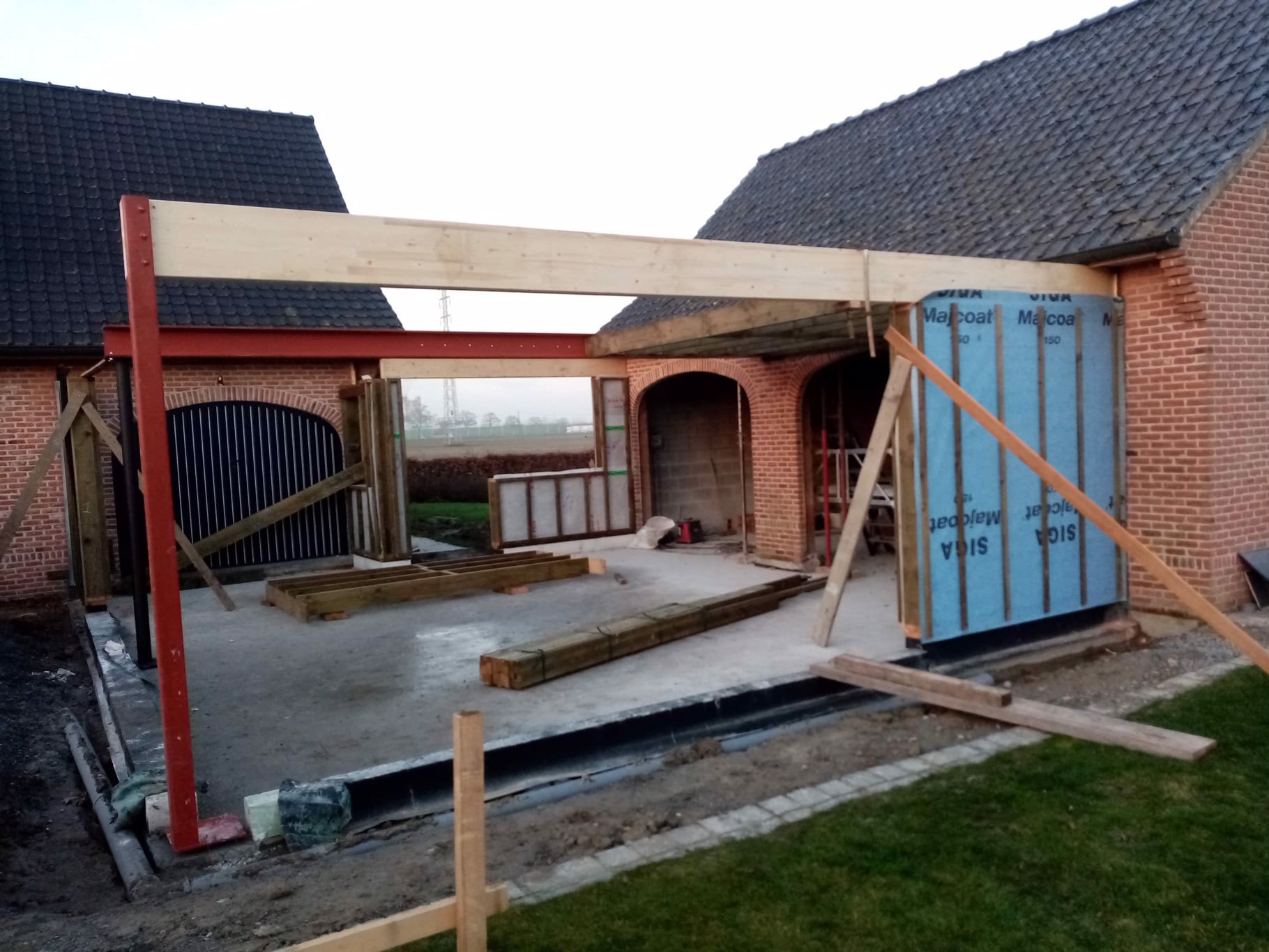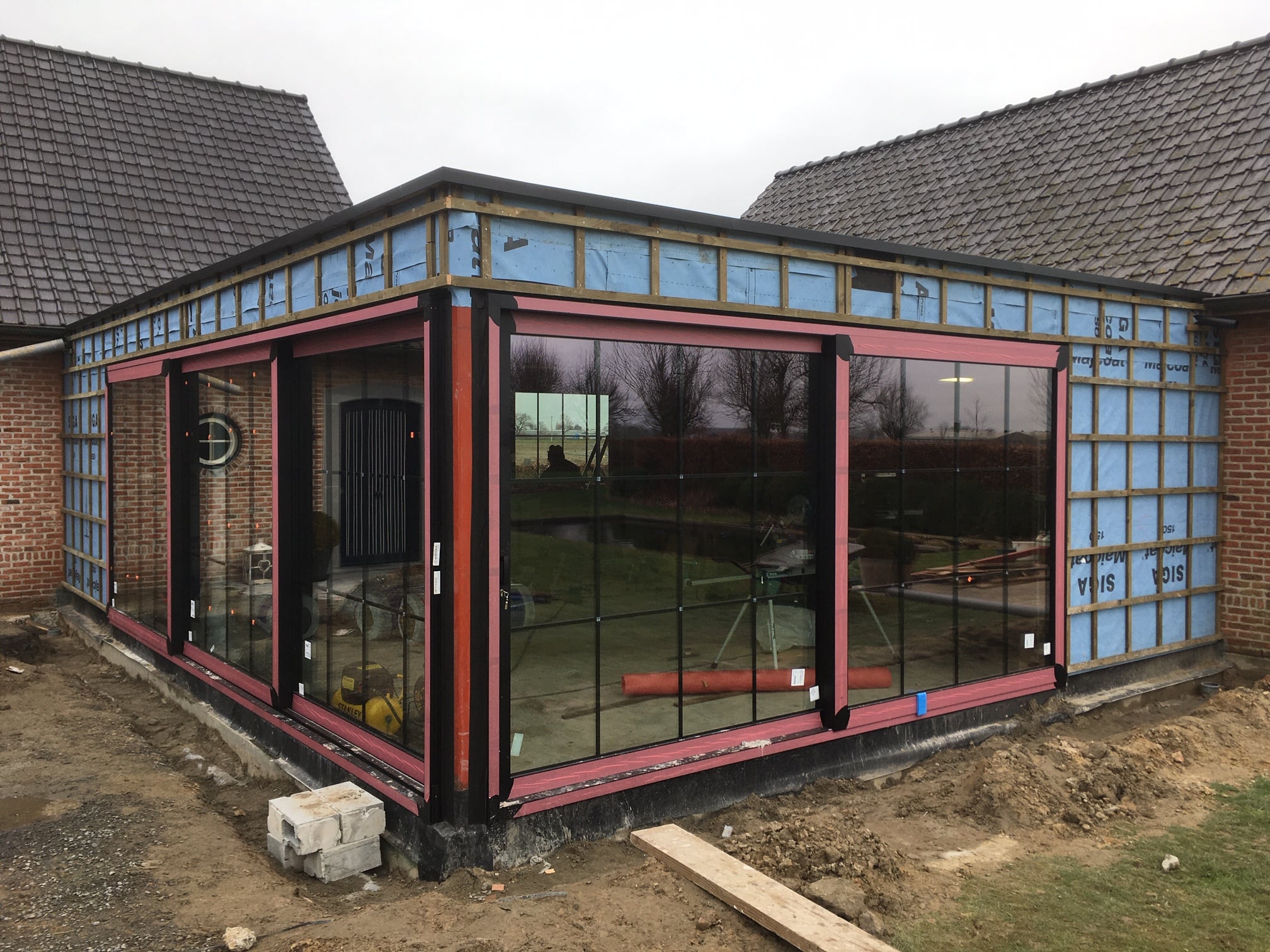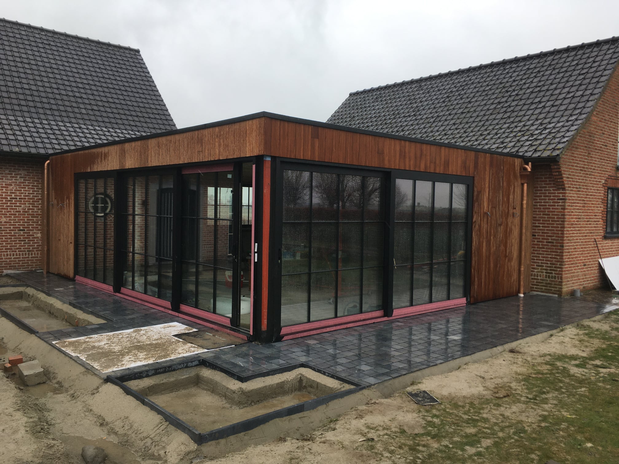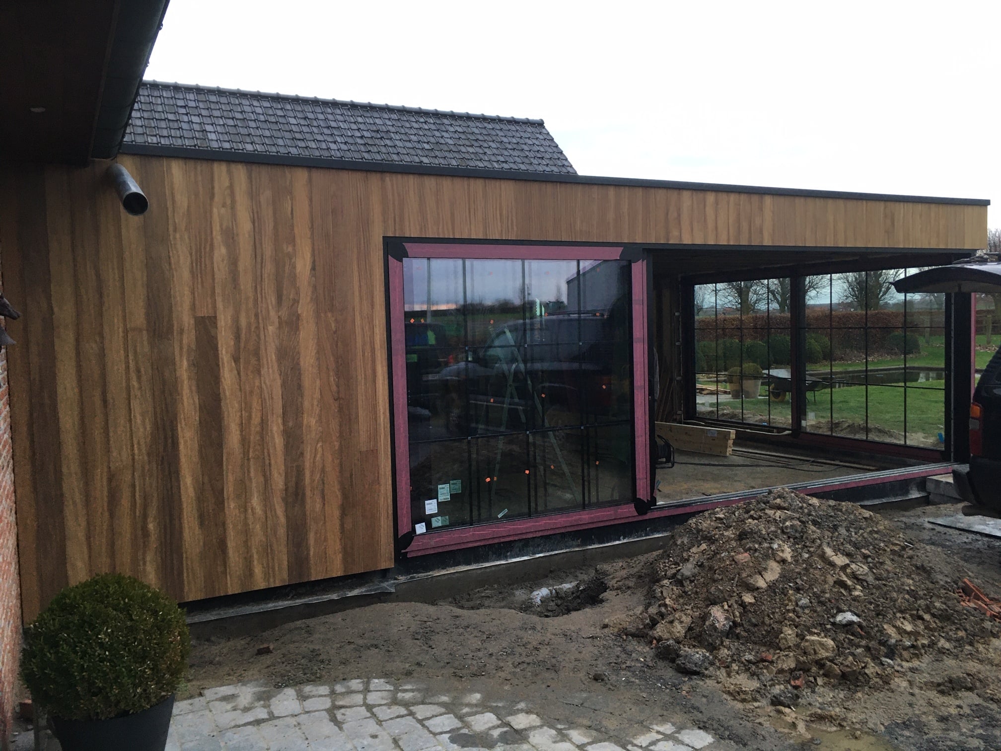 Aanbouw afgewerkt met afrormosia gevelbekleding.