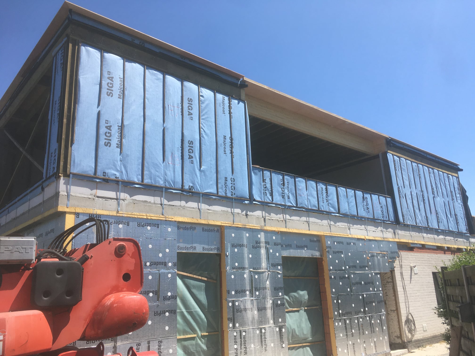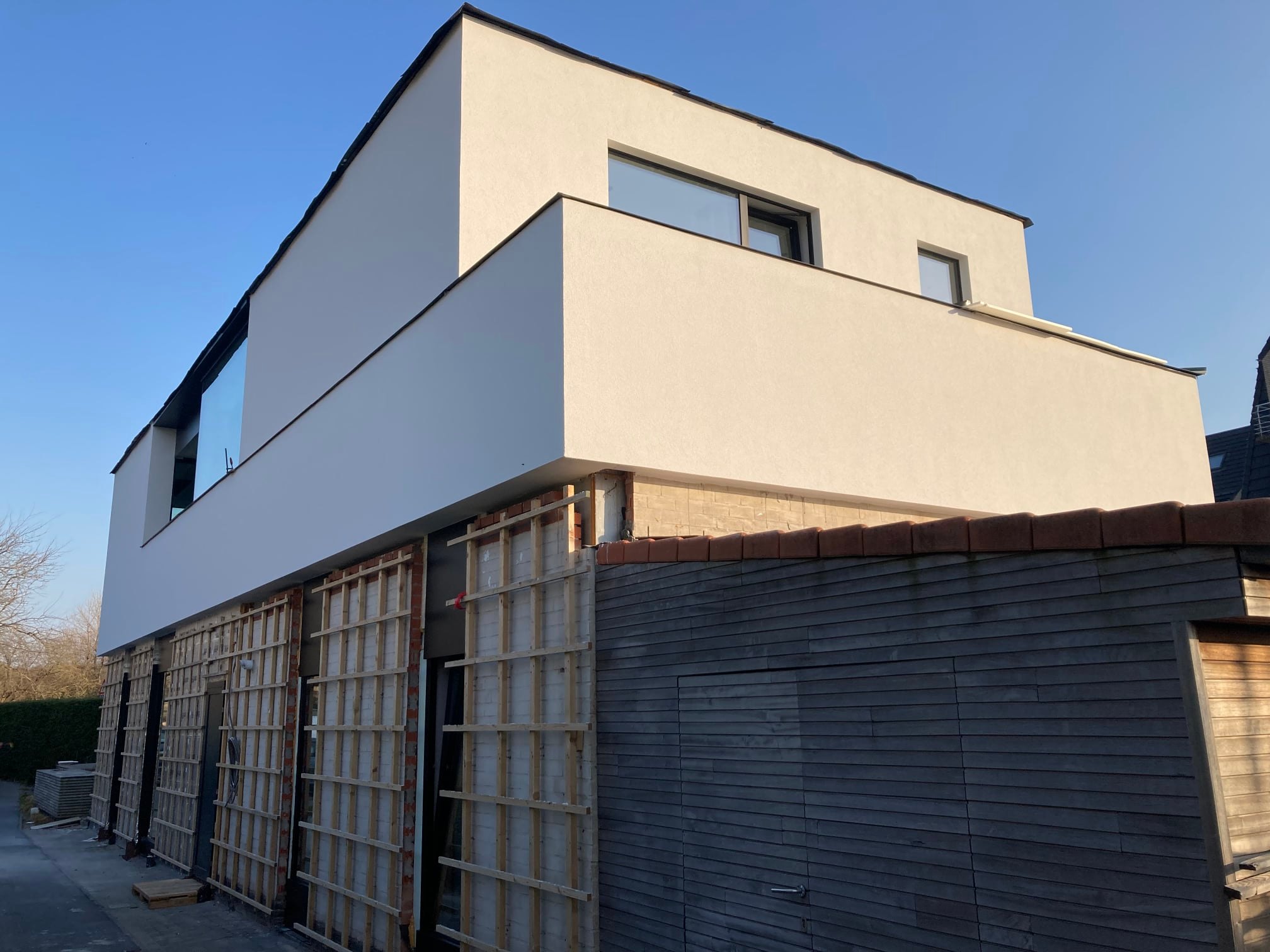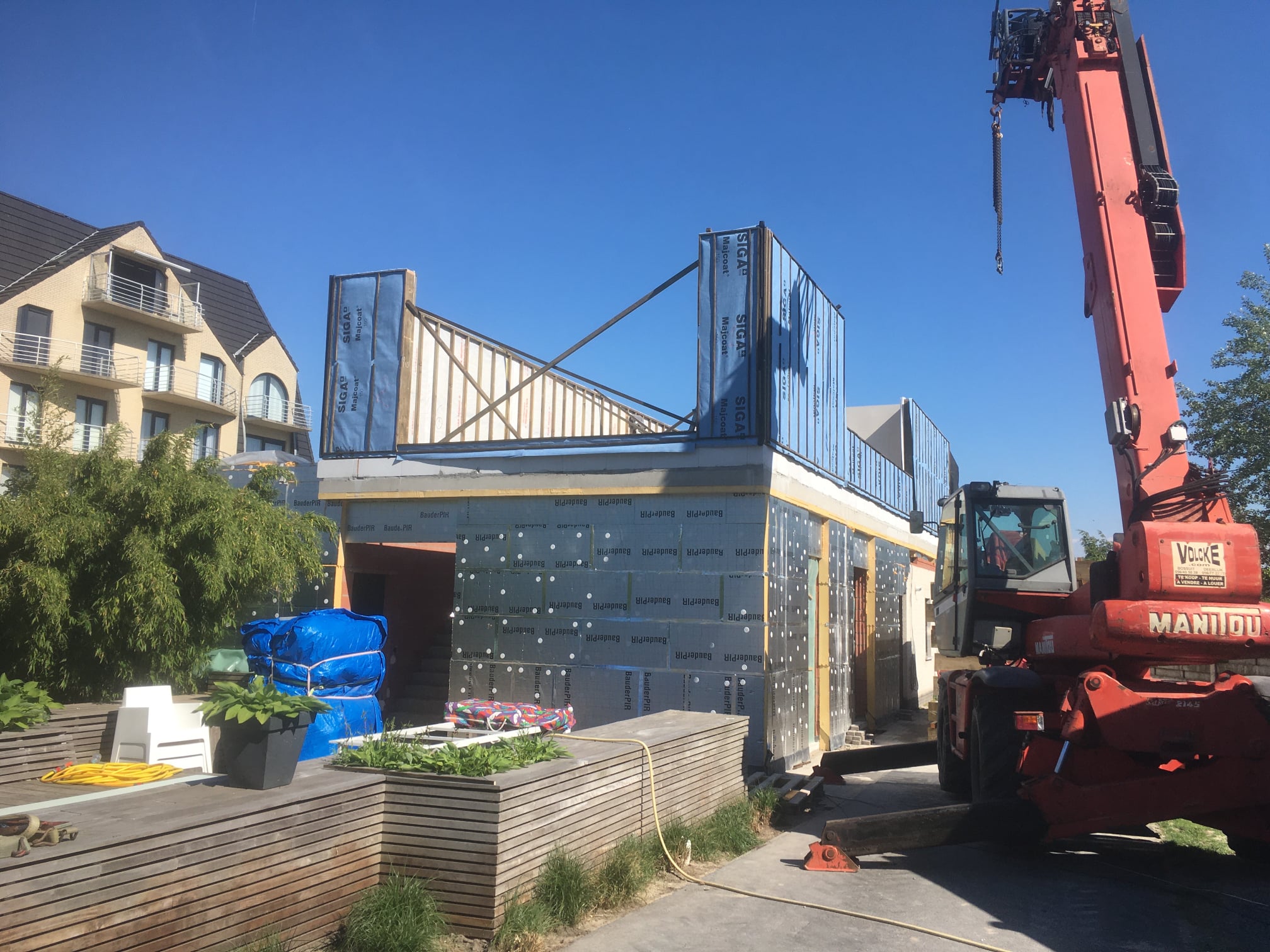 Optopping van 70m2 in De Haan, Hier neemt ECOPREFAB het houtskelet en de dakdichting voor zijn rekening.