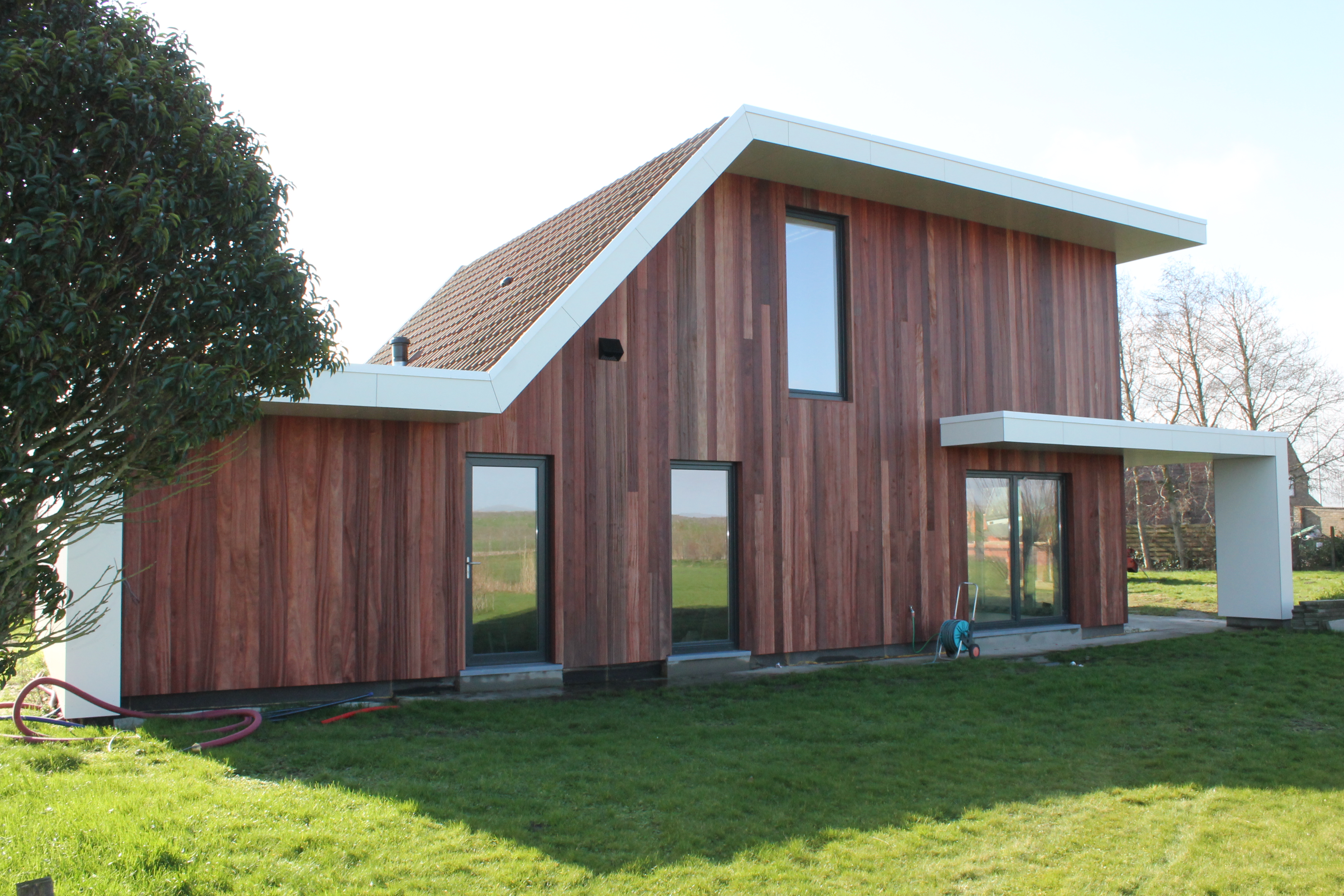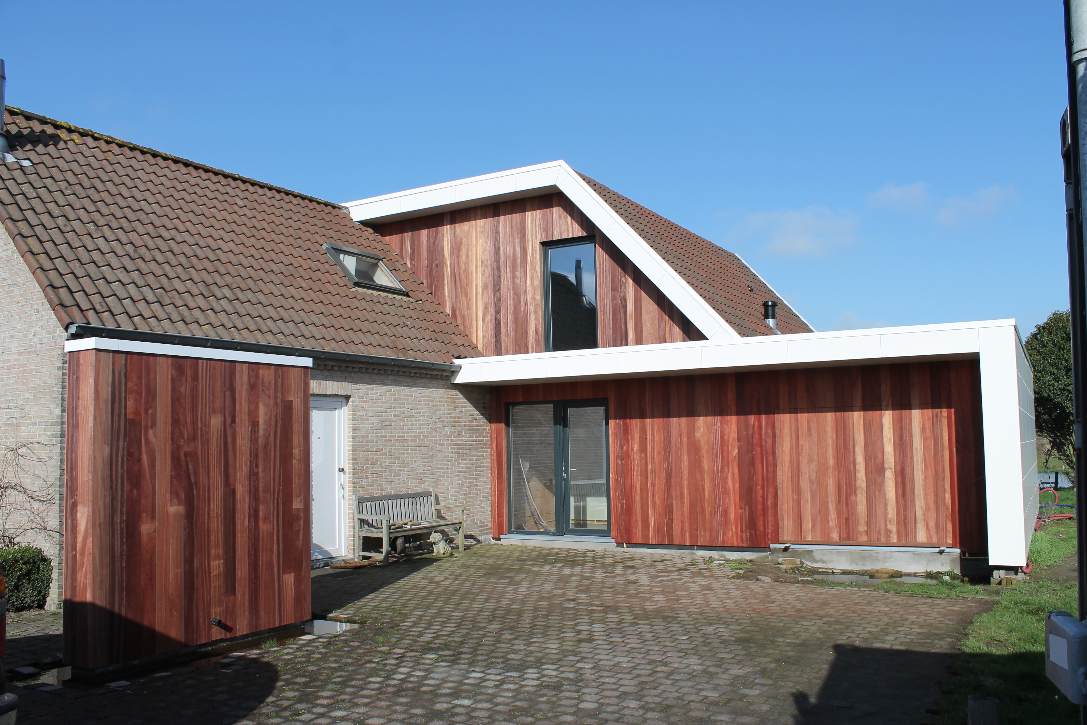 Plaatsing van een aanbouw te Knokke met padoek gevelafwerking in combinatie met rockpanel bekleding aan de oversteken
